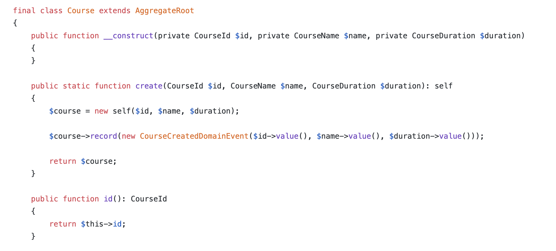 https://github.com/CodelyTV/php-ddd-example/blob/master/src/Mooc/Courses/Domain/Course.php