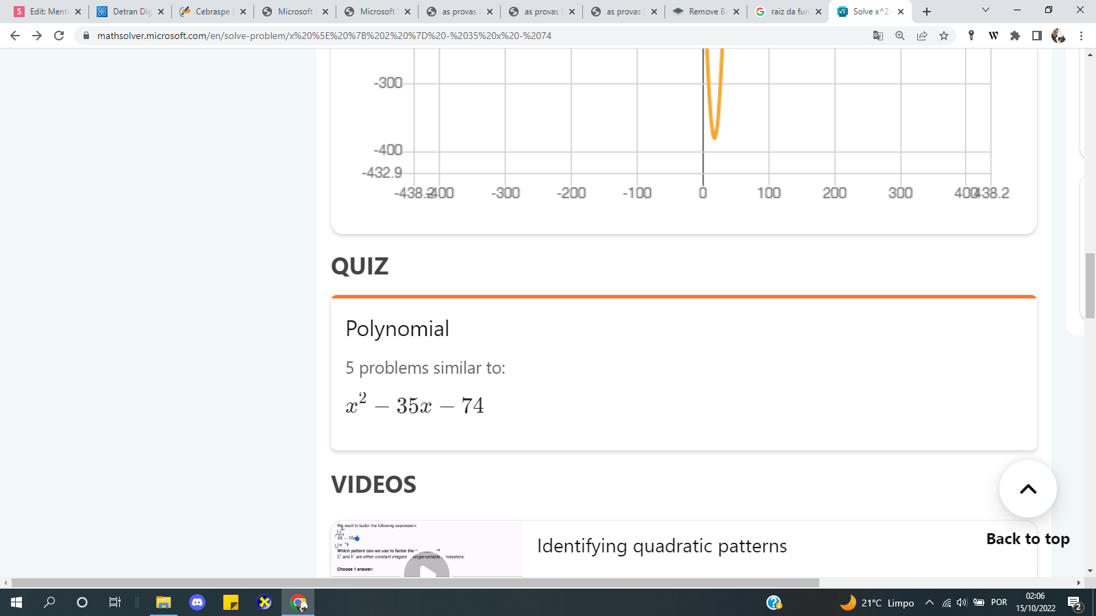 Já o número de motos é equivalente ao módulo da raiz negativa.