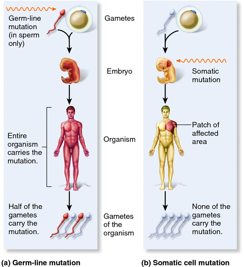 - Depende do tipo de célula em que a mutação ocorre