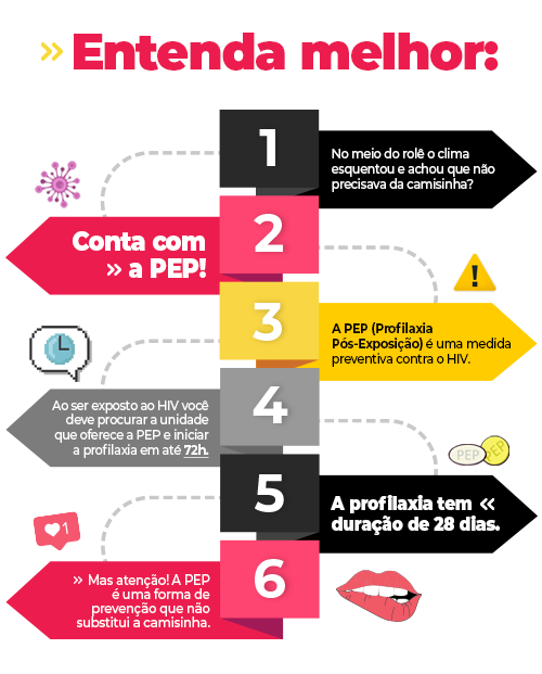 Relações sexuais SEMPRE com camisinha, não compartilhar seringas, evitar manusear instrumentos cortantes que possam estar contaminados, fazer uso da PEP em caso de exposição ao vírus e cuidados parecidos.
