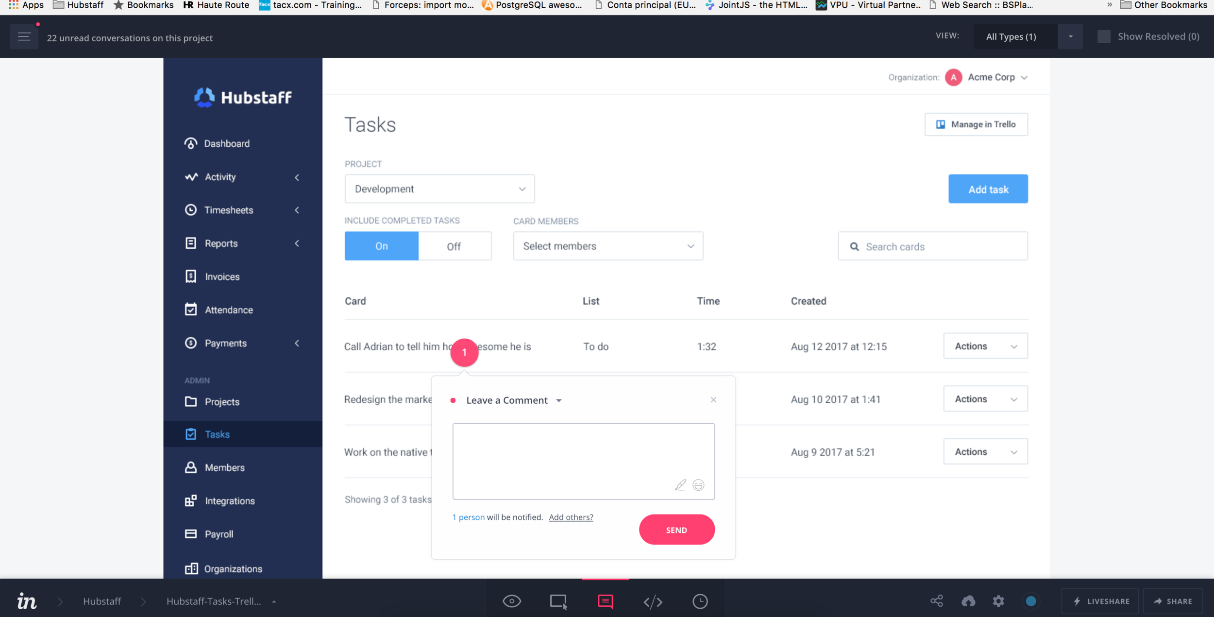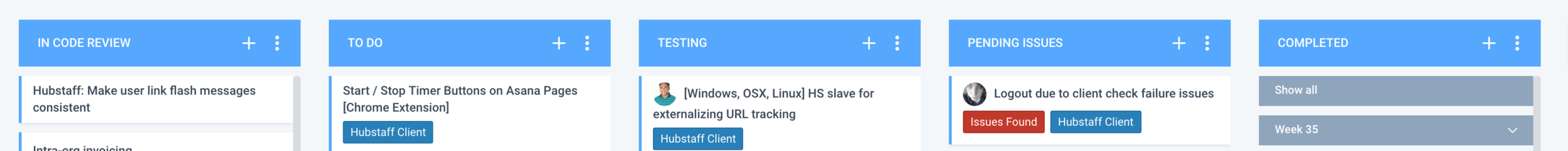 Hubstaff process while developing new features. Specification & User acceptance tests