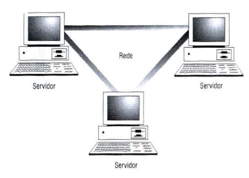A grande diferença que é que não existe distinção entre máquinas clientes e servidoras. As maquinas são compostas de um processador de usuário e de dados.