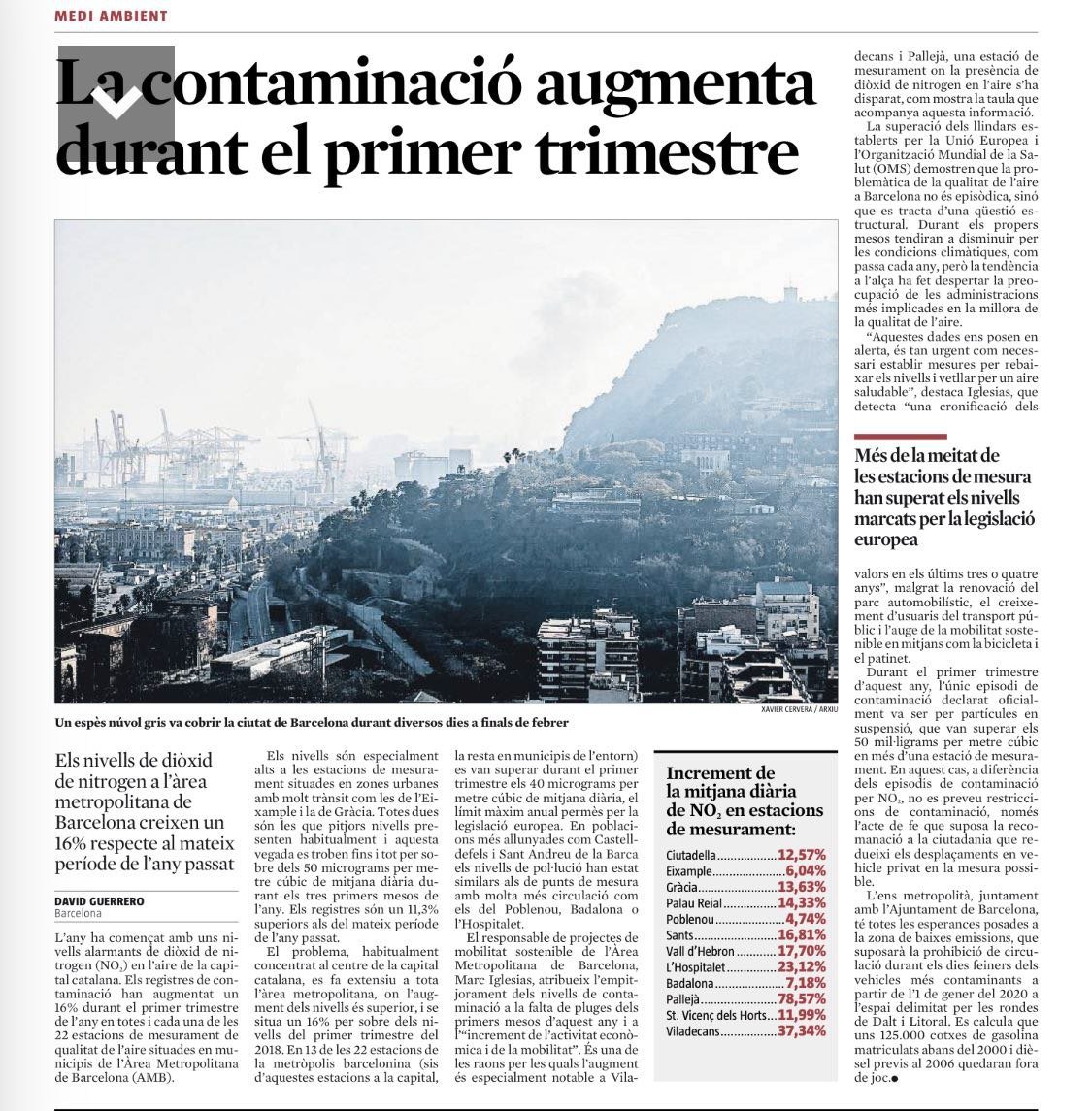 Si a Barcelona tinguéssim els nivells de qualitat de l'aire recomanats de l'Organització Mundial per la Salut (OMS), deixarien de produir-se 1 de cada 3 ictus, 2 de cada 10 infarts de miocardi, o 2 de cada 10 càncers de pulmó. ”