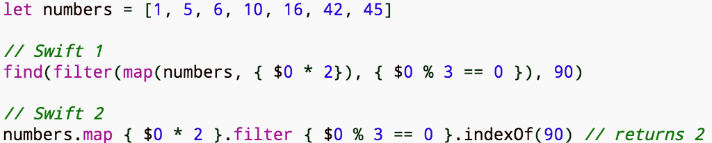 http://www.raywenderlich.com/108522/whats-new-in-swift-2