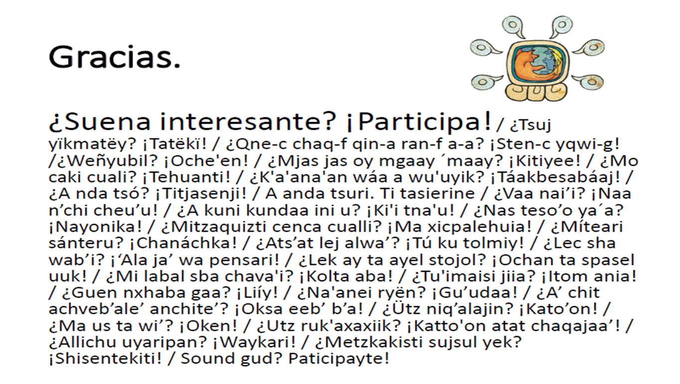 Buscamos crear un contexto que propicie el plurilingüismo y respeto de las lenguas nativas a través de su uso, reconocimiento e implementación en la Web.