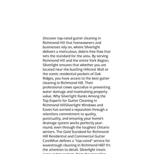 Website: https://silverlightwindowsandeaves.ca/window-cleaning-richmond-hill/. Discover top-rated gutter cleaning in Richmond Hill that homeowners and businesses rely on, where Silverlight delivers a meticulous, debris-free flow that sets the stan