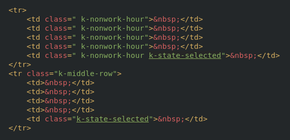 div.k-scheduler table.k-scheduler-table td.k-state-selected - just right 😌