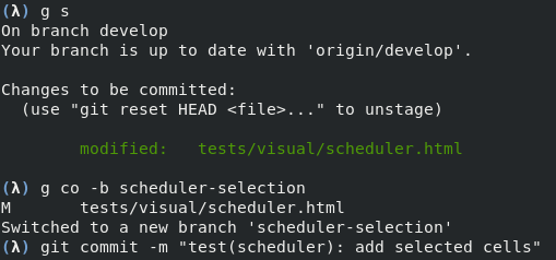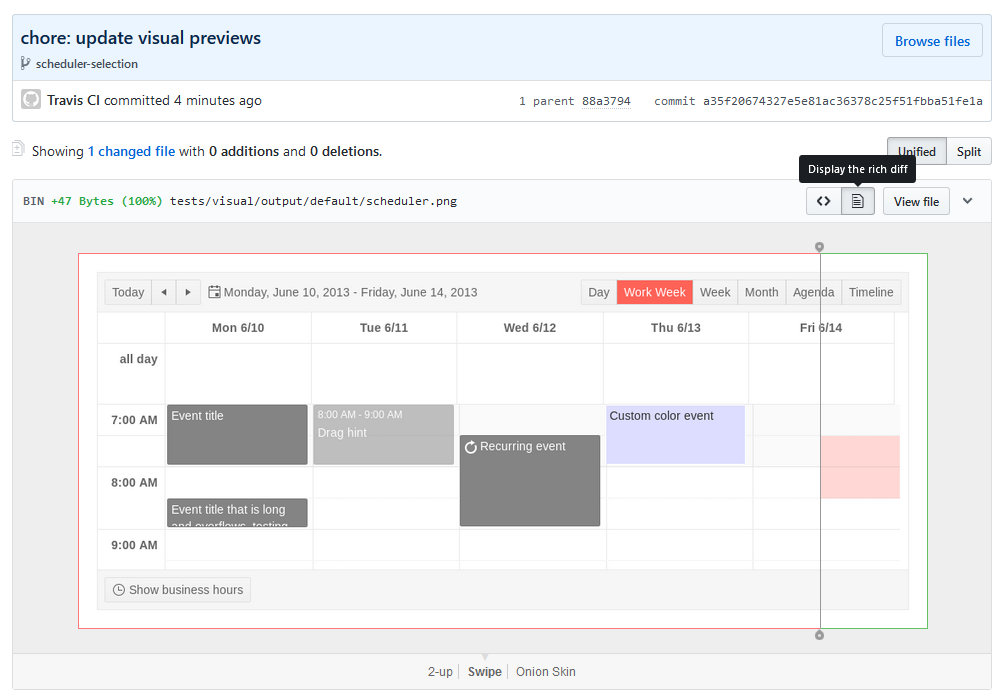 (e.g. in tests/visual/scheduler.html) - Push the branch to make a "red" screenshot