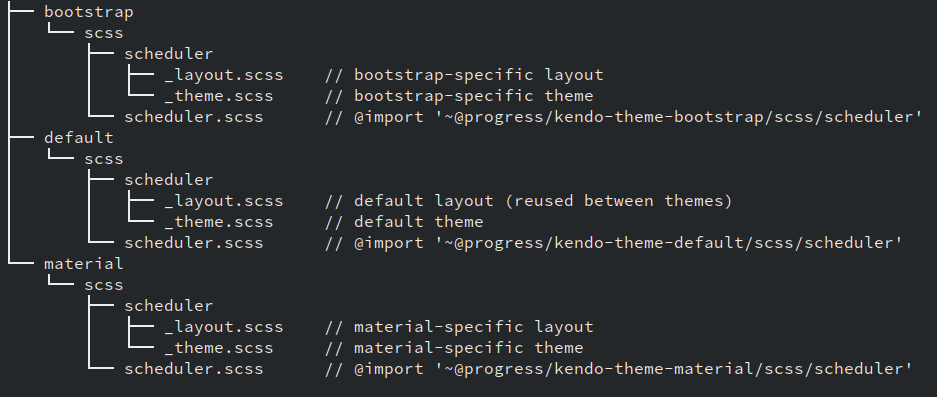 @import "~@progress/kendo-theme-default/scss/scheduler";Customize colors & sizes