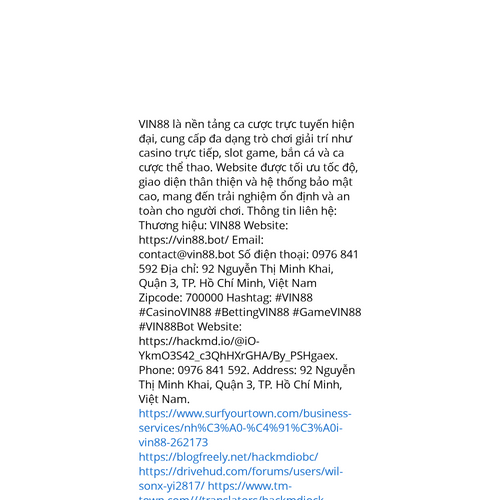 Website: https://hackmd.io/@iO-YkmO3S42_c3QhHXrGHA/By_PSHgaex. VIN88 là nền tảng ca cược trực tuyến hiện đại, cung cấp đa dạng trò chơi giải trí như casino trực tiếp, slot game, bắn cá và ca cược thể thao. Website được tối ưu tốc độ, giao diện thân t