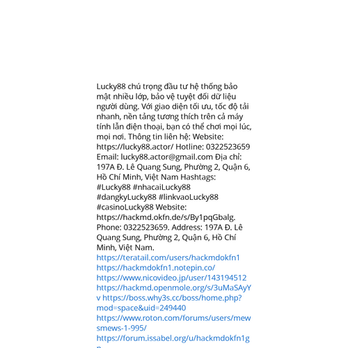 Website: https://hackmd.okfn.de/s/By1pqGbalghttps://hackmd.okfn.de/s/By1pqGbalg Lucky88 chú trọng đầu tư hệ thống bảo mật nhiều lớp, bảo vệ tuyệt đối dữ liệu người dùng. Với giao diện tối ưu, tốc độ tải nhanh, nền tảng tương thích trên cả máy tính lẫn điện thoại, bạn có thể chơi mọi