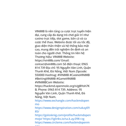 Website: https://hackmd.openmole.org/s/gJBYoh7KBhttps://hackmd.openmole.org/s/gJBYoh7KB VIN88B là nền tảng ca cược trực tuyến hiện đại, cung cấp đa dạng trò chơi giải trí như casino trực tiếp, slot game, bắn cá và ca cược thể thao. Website được tối ưu tốc độ, giao diện thân thiện và hệ t