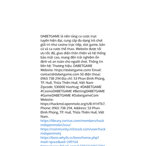 Website: https://hackmd.openmole.org/s/B-H1tfTk7https://hackmd.openmole.org/s/B-H1tfTk7 DABETGAME là nền tảng ca cược trực tuyến hiện đại, cung cấp đa dạng trò chơi giải trí như casino trực tiếp, slot game, bắn cá và ca cược thể thao. Website được tối ưu tốc độ, giao diện thân thiện và h