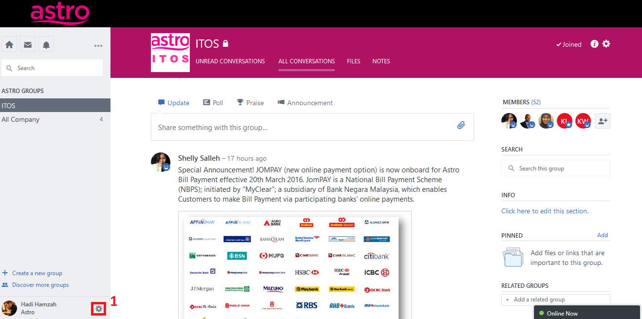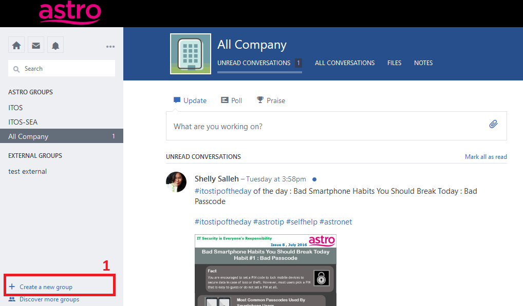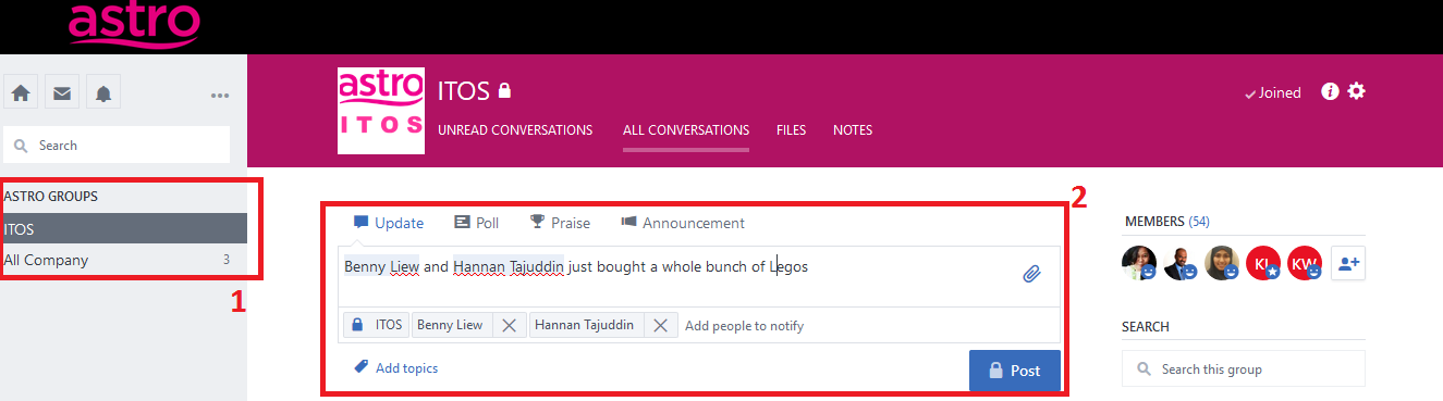 Step 1 - Go to https://www.yammer.com/astro.com.my