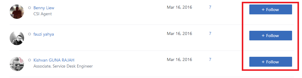 2. Click +Follow on people you want to follow.