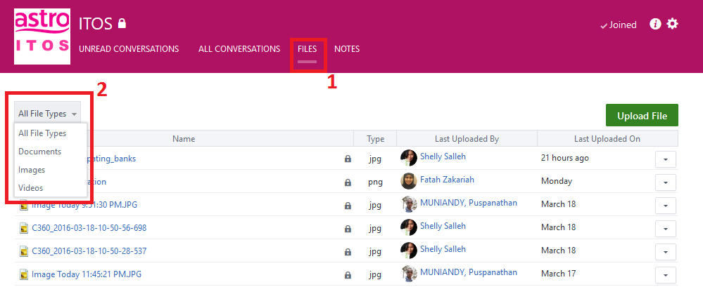 1. Select Files in the header of your Group to see all Files that have been uploaded.