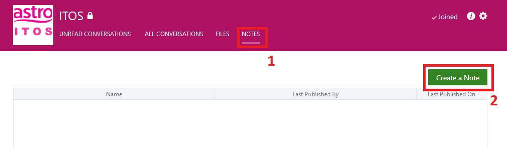 1. Select Notes in the header to see all Notes that have been created by others.