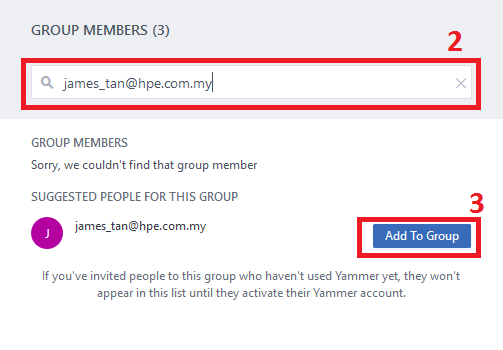 2. If the person is not on Yammer, just write his/her email address as shown.