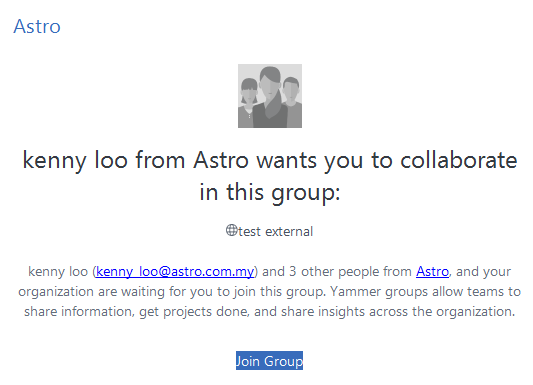 Note: Only work emails can be invited to external groups (i.e. gmail or yahoo email addresses are not allowed)