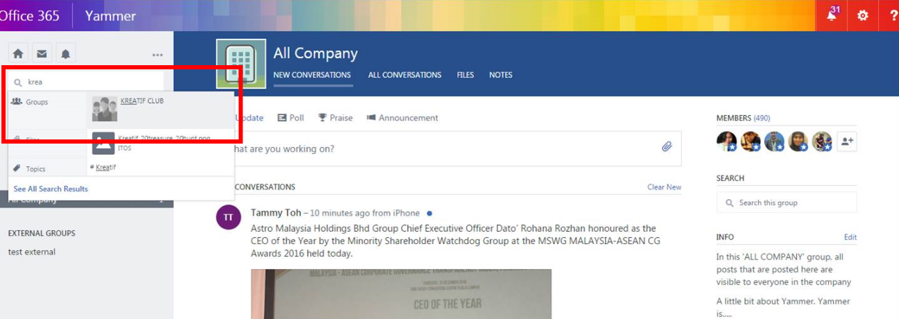 4. Stay tuned for updates on Kreatif Club activities in Yammer.