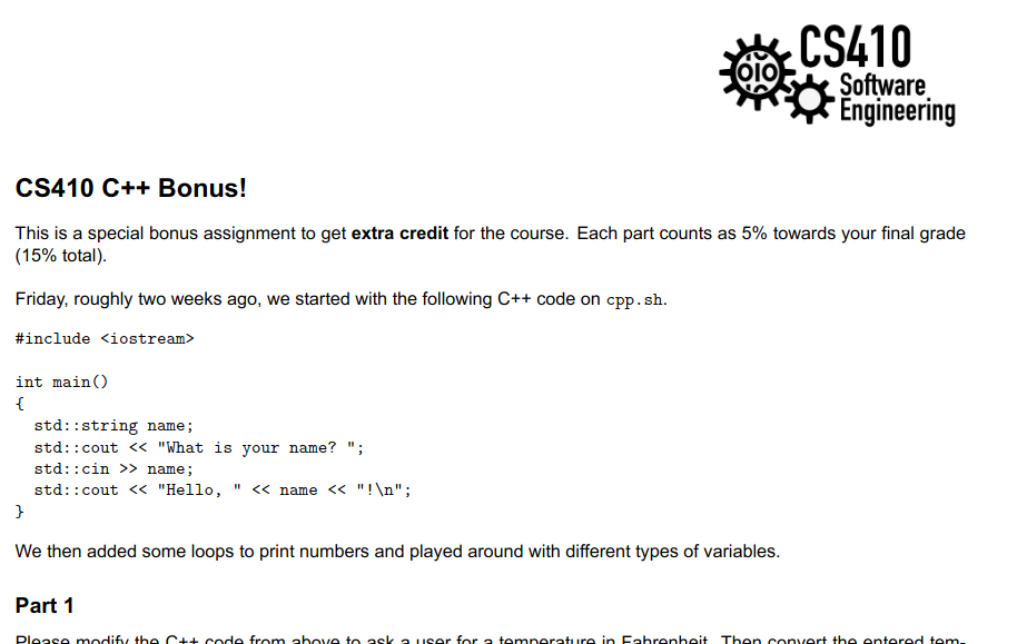 std::cout << "Please enter a temperature. ";