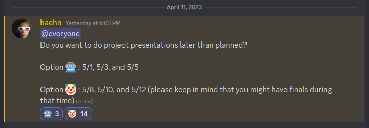 Friday 4/14 most likely via zoom
