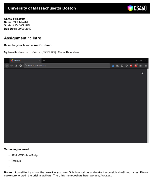 CS460 Computer Graphics - University of Massachusetts Boston