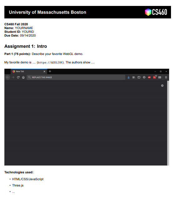 Slides for CS460 Computer Graphics at UMass Boston. See https://cs460.orghttps://cs460.org