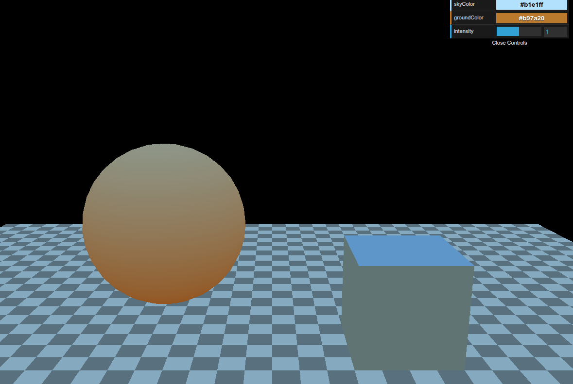 var light = new THREE.HemisphereLight(skyColor, groundColor, intensity);