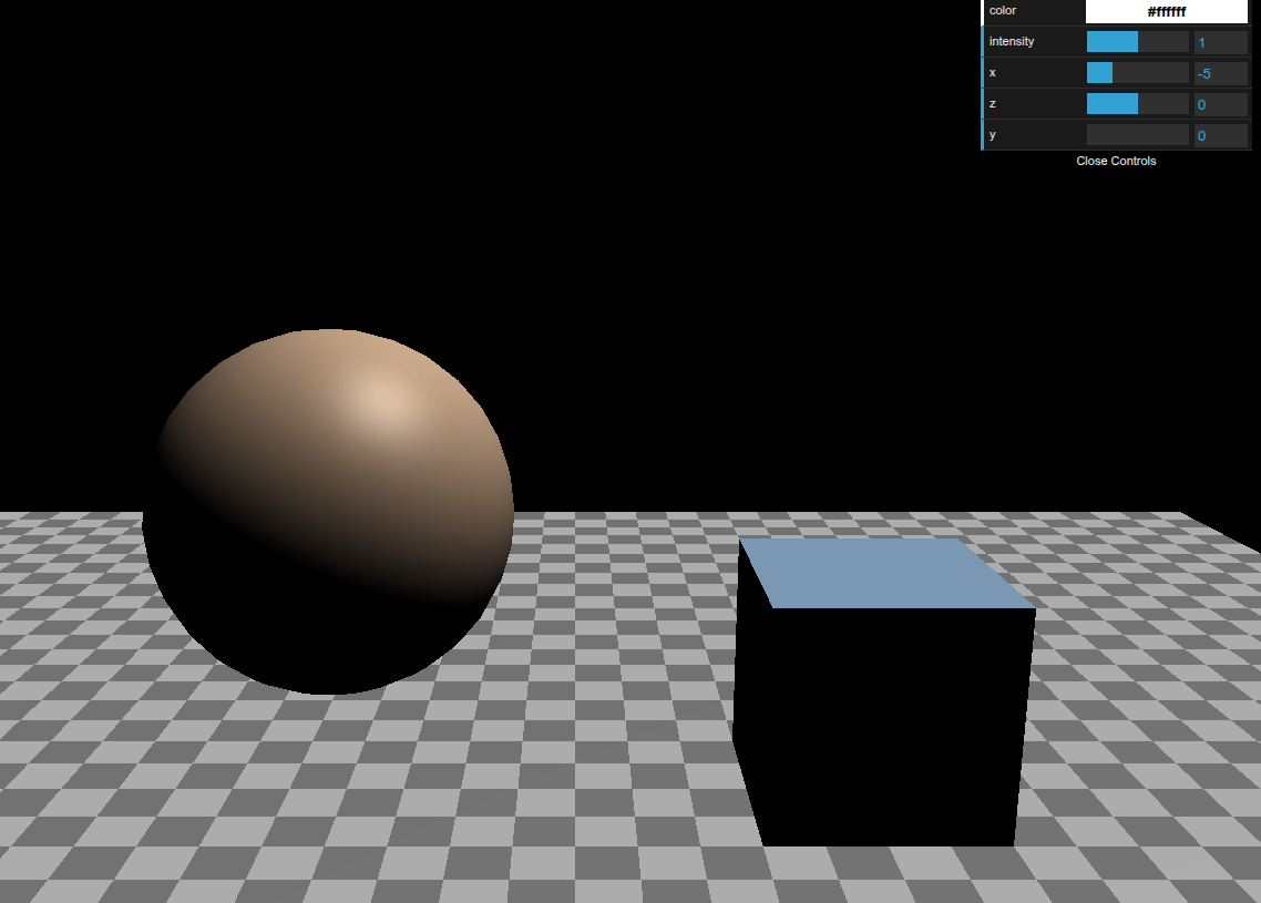 gui.add(light, 'distance', 0, 40)var color = 0xFFFFFF;