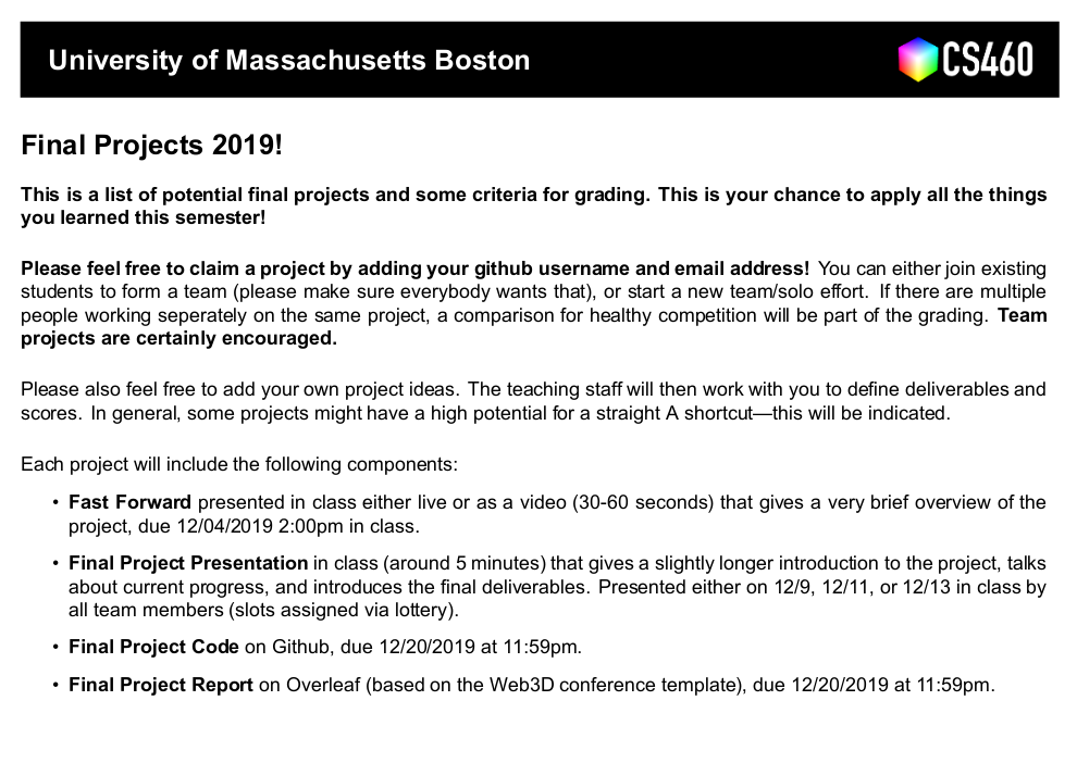 Slides for CS460 Computer Graphics at UMass Boston. See https://cs460.orghttps://cs460.org
