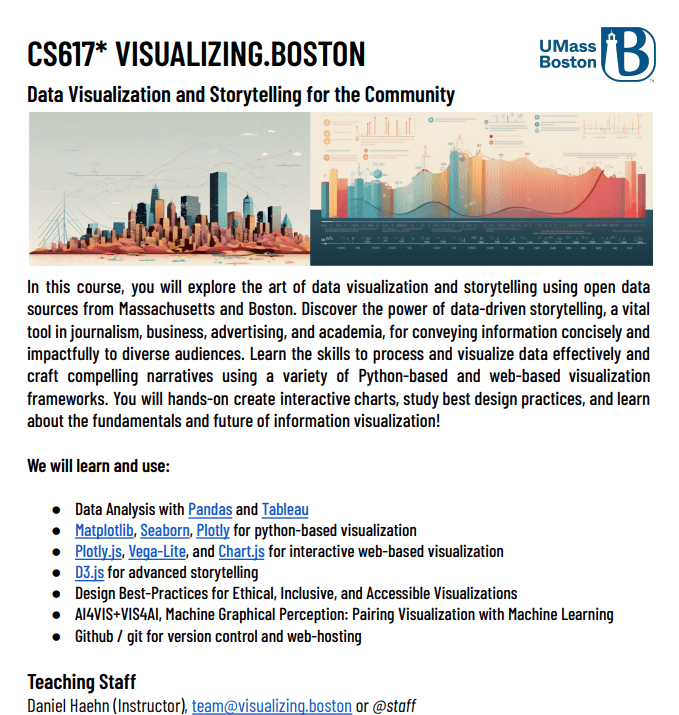 At the beginning of every class we will randomly select a student to showcase one of their visualizations and we will discuss as a group!
