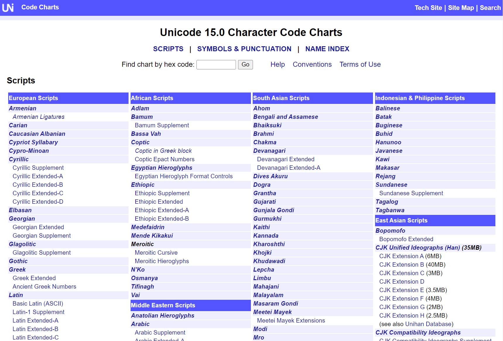 https://unicode.org/charts/