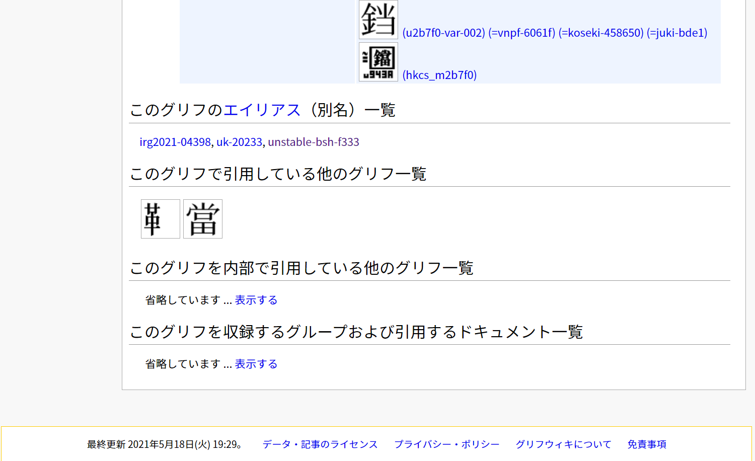 IRG Working Set 2021 に含まれる漢字ということがわかる