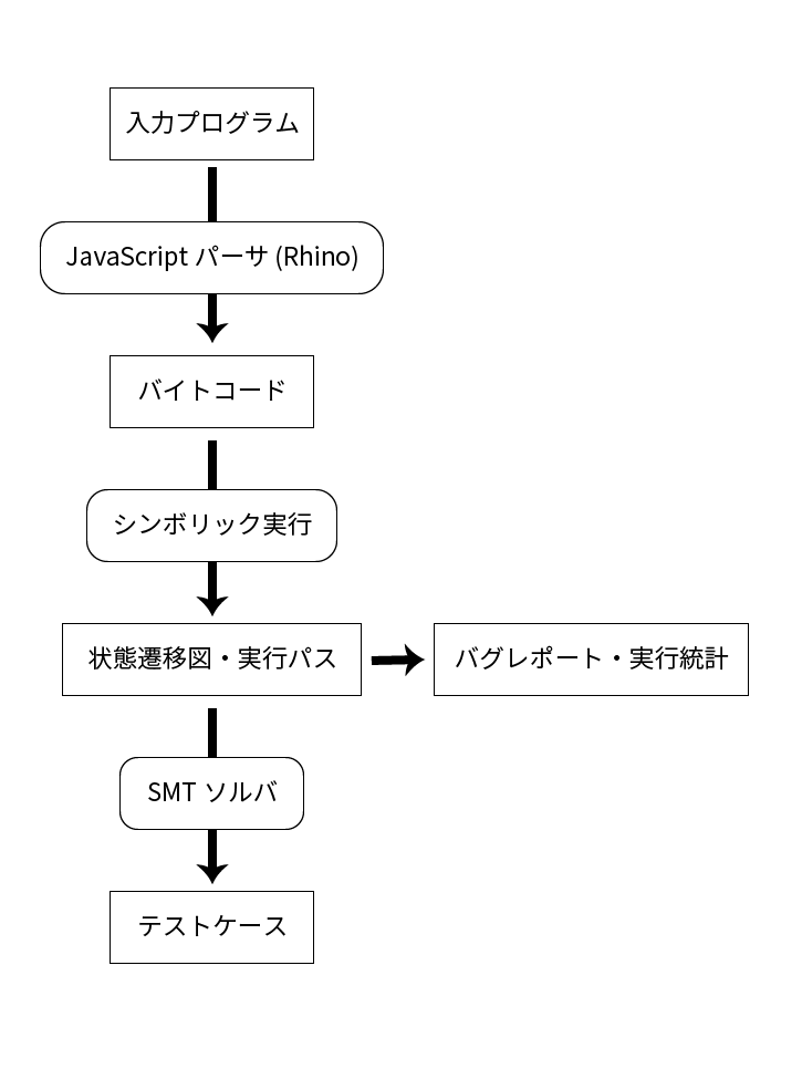 - 本研究では、JavaScriptプログラムのシンボリック実行に