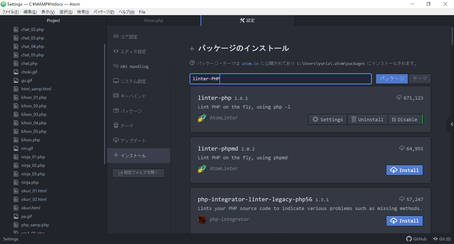 linter-PHPのインストール