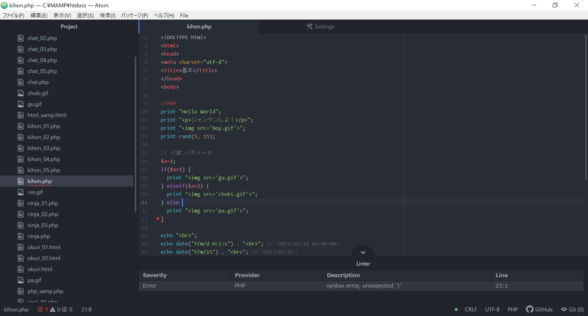 「linter-PHP」のパッケージを追加してください