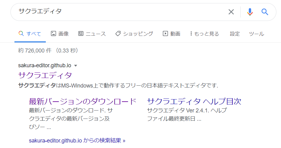 Googleで「サクラエディタ」と検索し