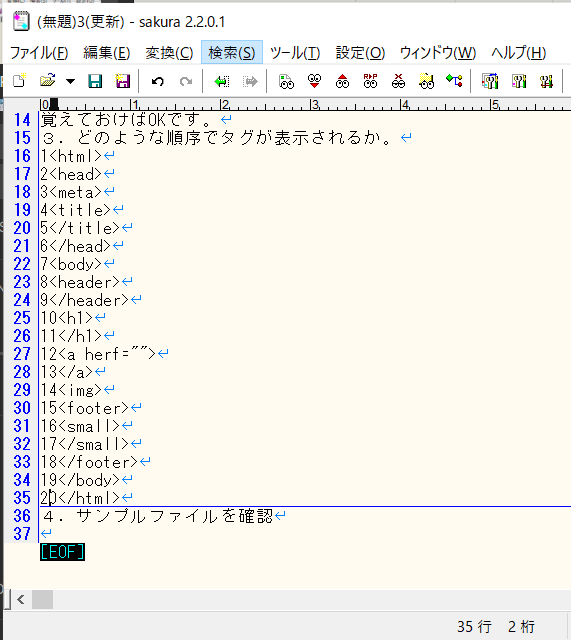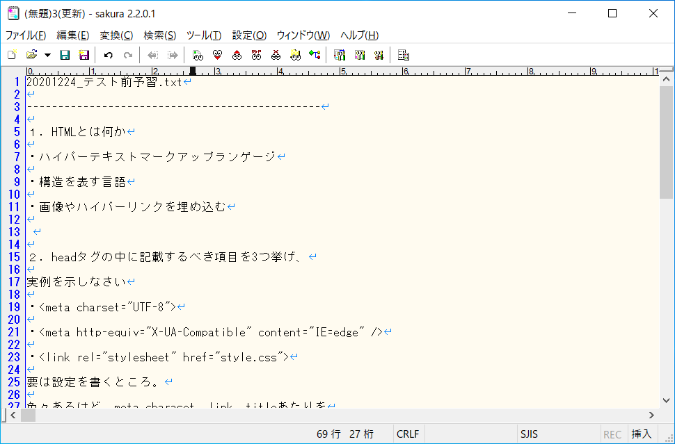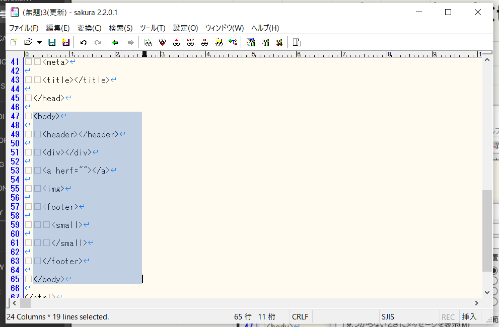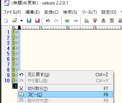 サンプルテキストをサクラエディタに貼り付ける
