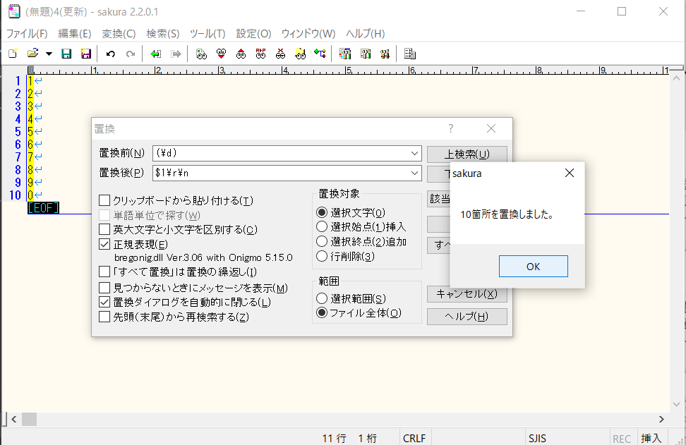 「(.{10})」→「$1¥r¥n」