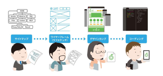 サイトマップ(ホームページ画面の構成一覧)や、デザインカンプ(デザインの完成見本の絵)を作成します。