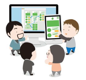 システムエンジニアが作った設計書を見てプログラマー達がシステムを作り上げます。