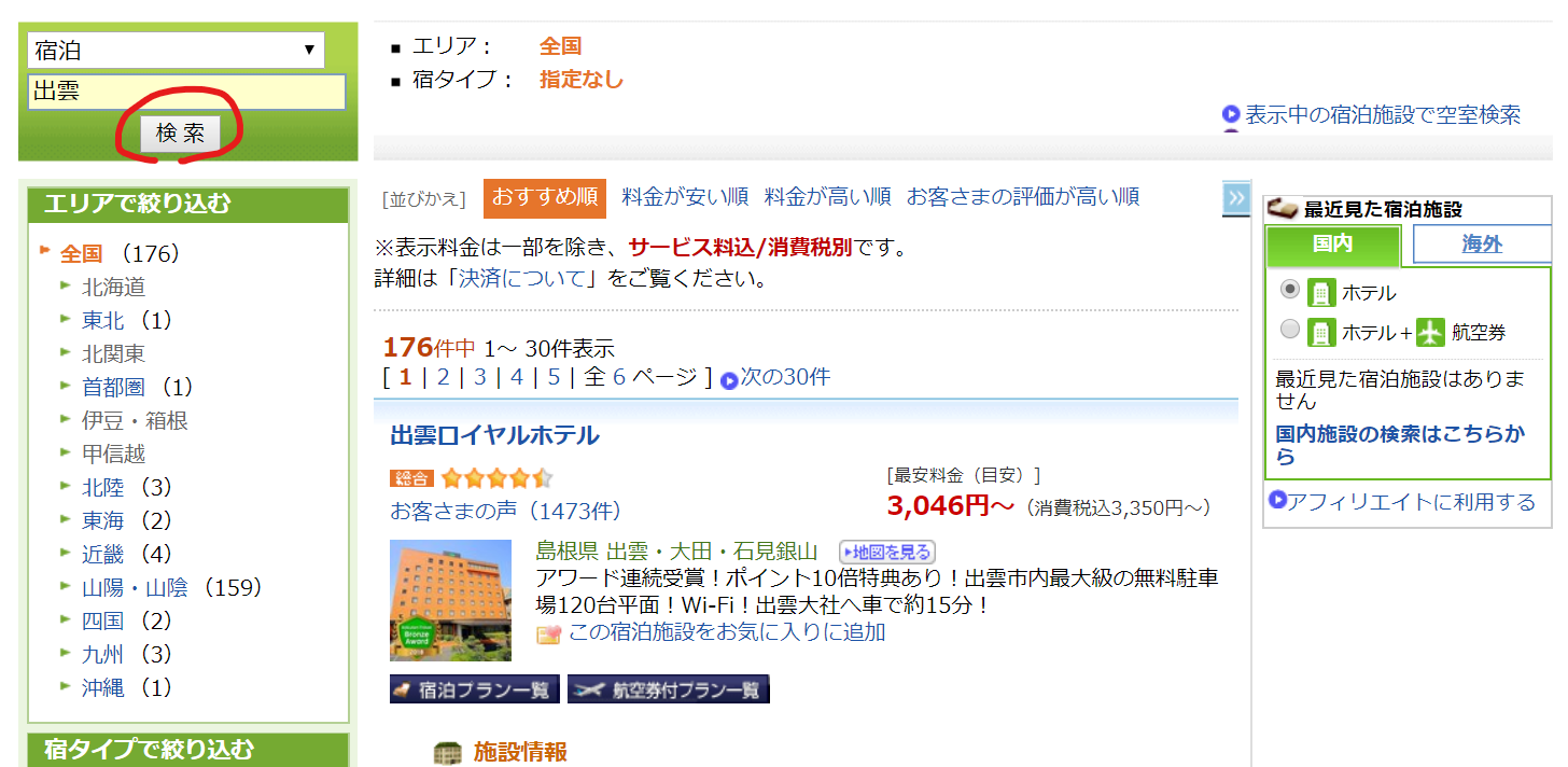 Webシステムの例:楽天トラベル