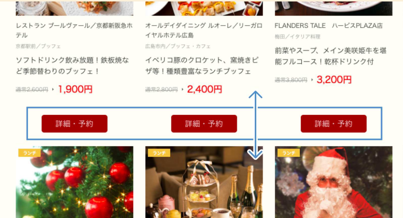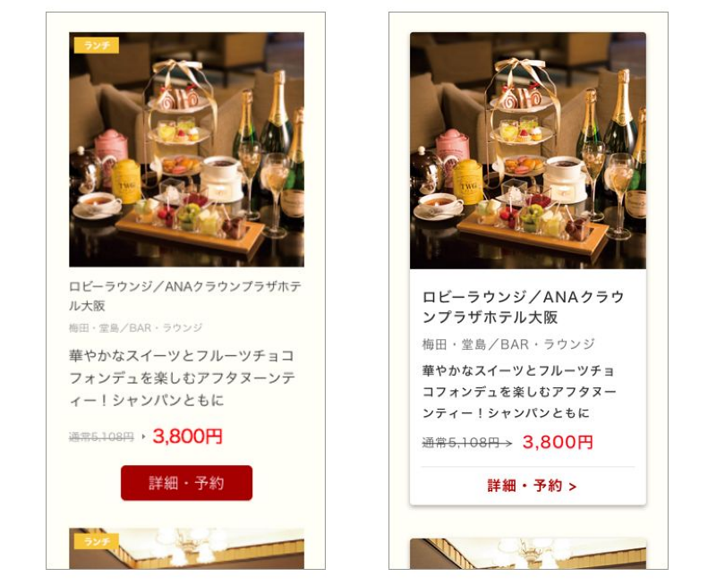 「詳細・予約」の位置をレストランの情報に近接させ、ひとつのまとまりにさせます。