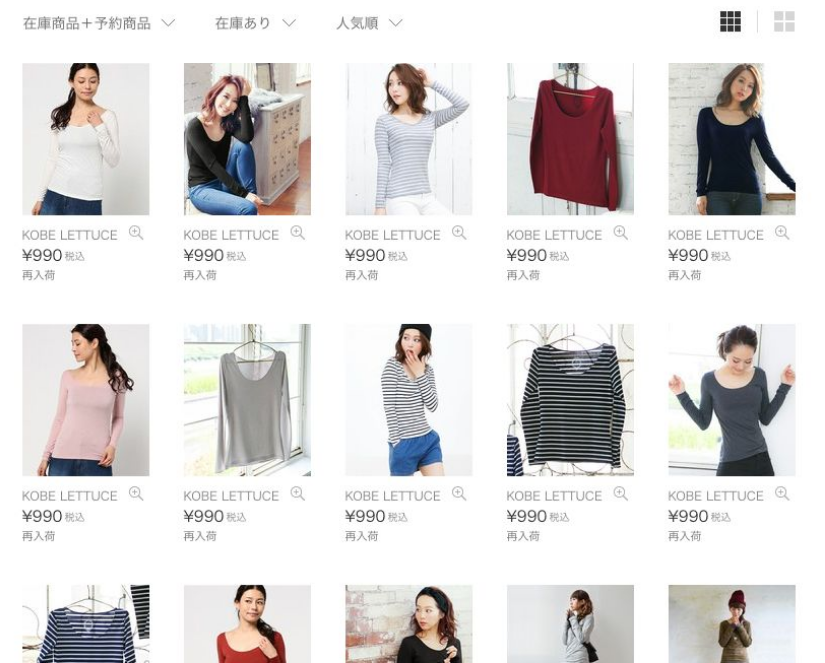 次ページで表示するネットショップでは「タイトル」「写真」「値段」などの要素を「等間隔」で繰り返しています。要素を反復することによって一貫性や安定感が生まれ、ユーザーは写真や値段の位置を予期しながら商品を探すことができます。