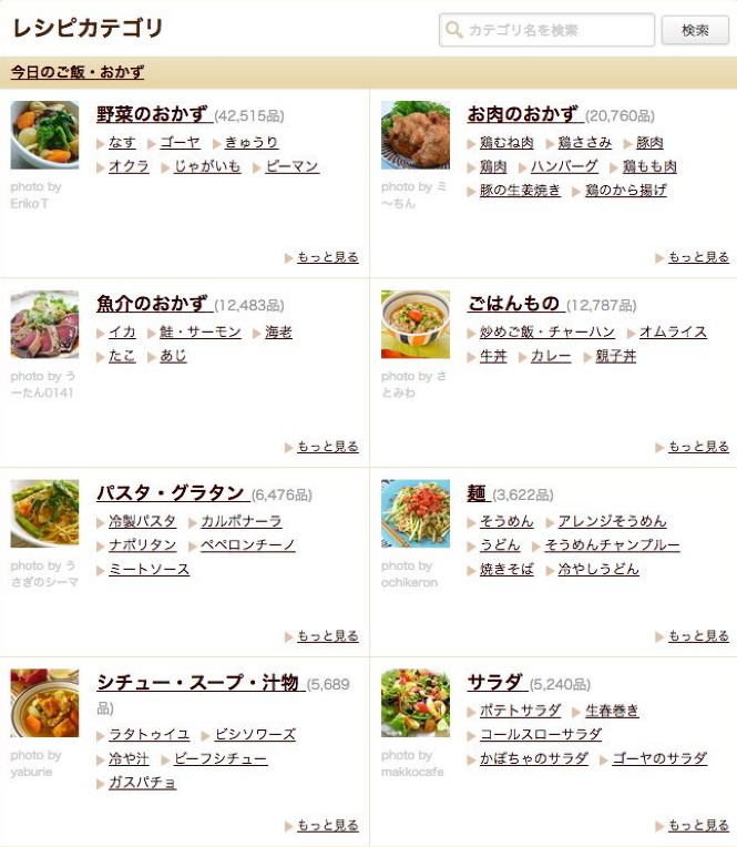 このように情報が多い場合でも、「料理のカテゴリ」「具体的な食材」の2段階の段階的に選択肢を分けることでユーザーか簡単に意思決定しやすいように工夫しています。