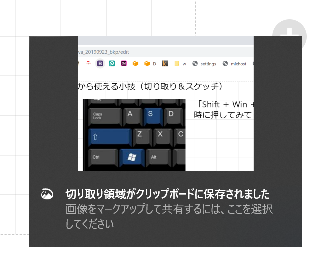 切り取った後に通知をクリックすると編集モードが開きます。