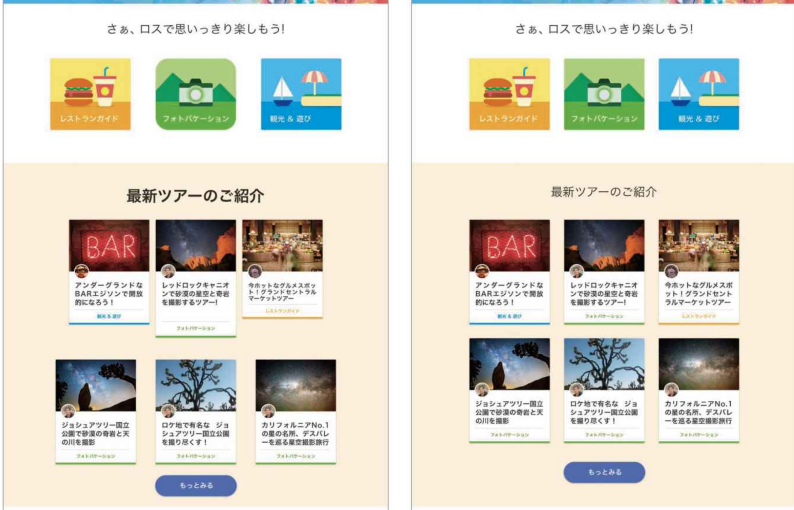 「見出しを大きく」「本文を小さく」コントラストを付けることで、ユーザーが読む順番を自然と理解できるようにデザインされています。そのため、1枚目よりも2枚目の方が読みやすく感じるのです。