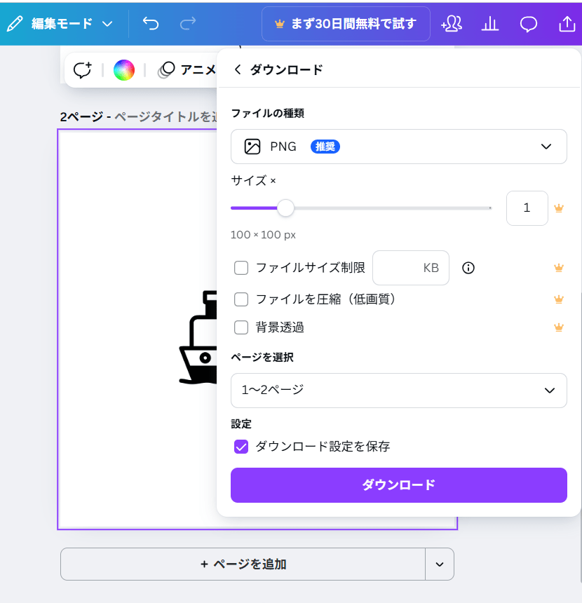 カスタムサイズ … 素材集めに便利 透過背景は有料