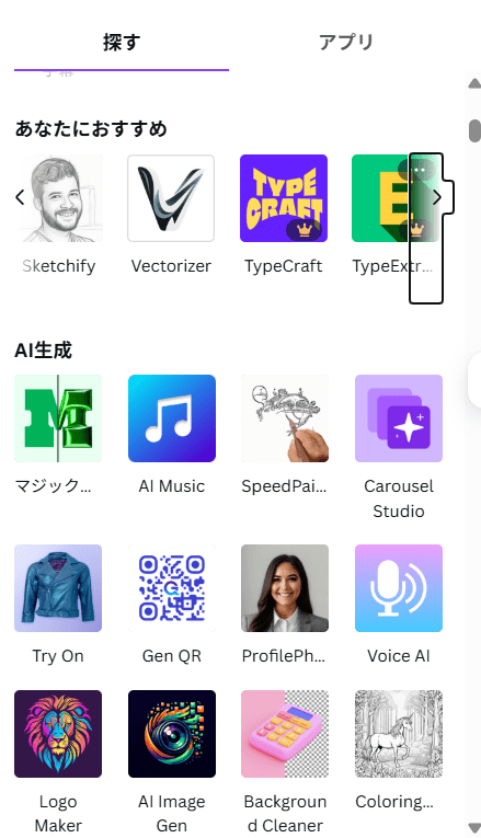 Canvaのその他アプリ…手書き風 ドット絵 変換など
